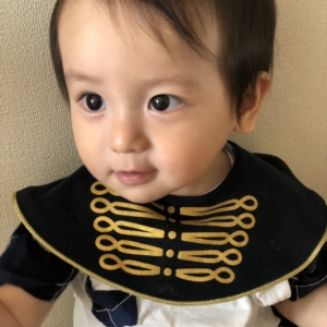 長袖くまちゃんお食事エプロン 1〜3歳用